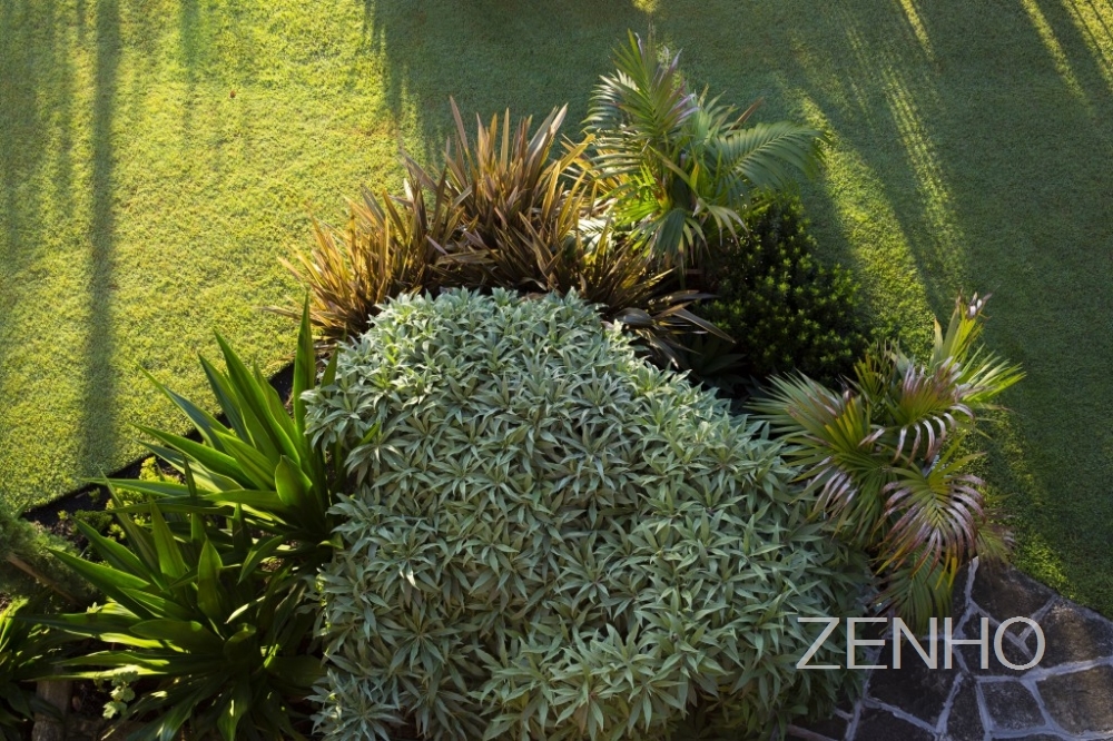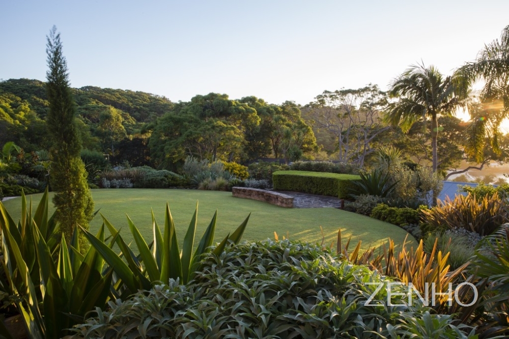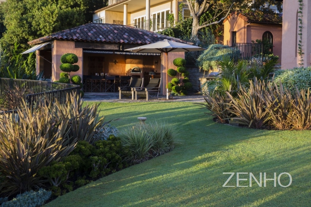 花园拥有一块圆形的大草坪
