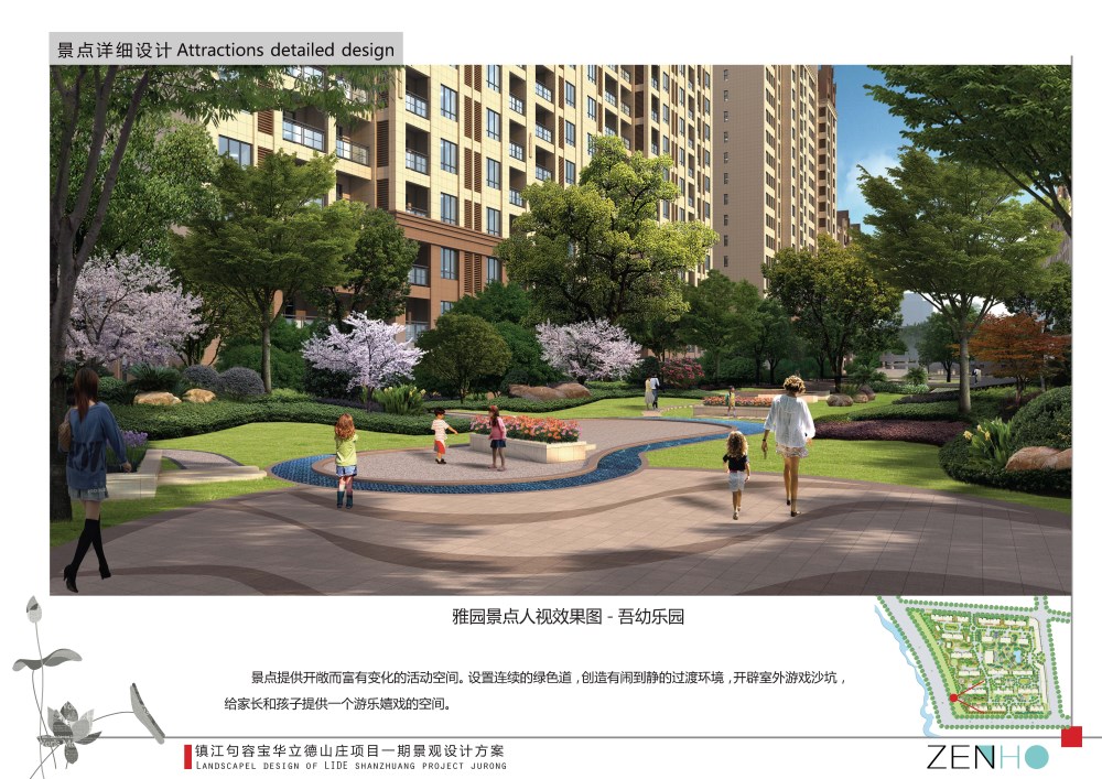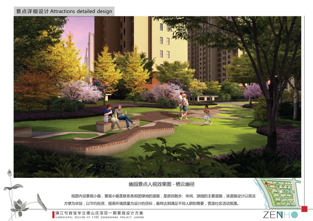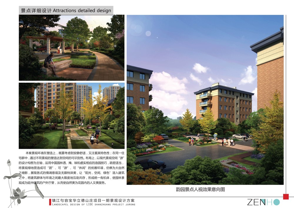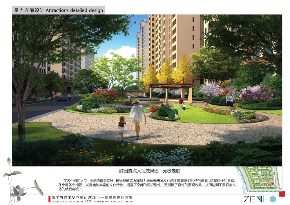 居住区花园景观设计效果图案例展示全园共分三大景观组团和社区公园,分别以文化意象命名营造。