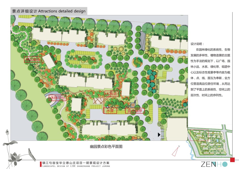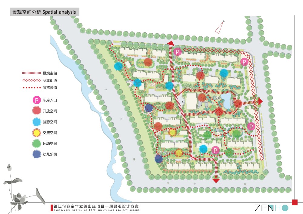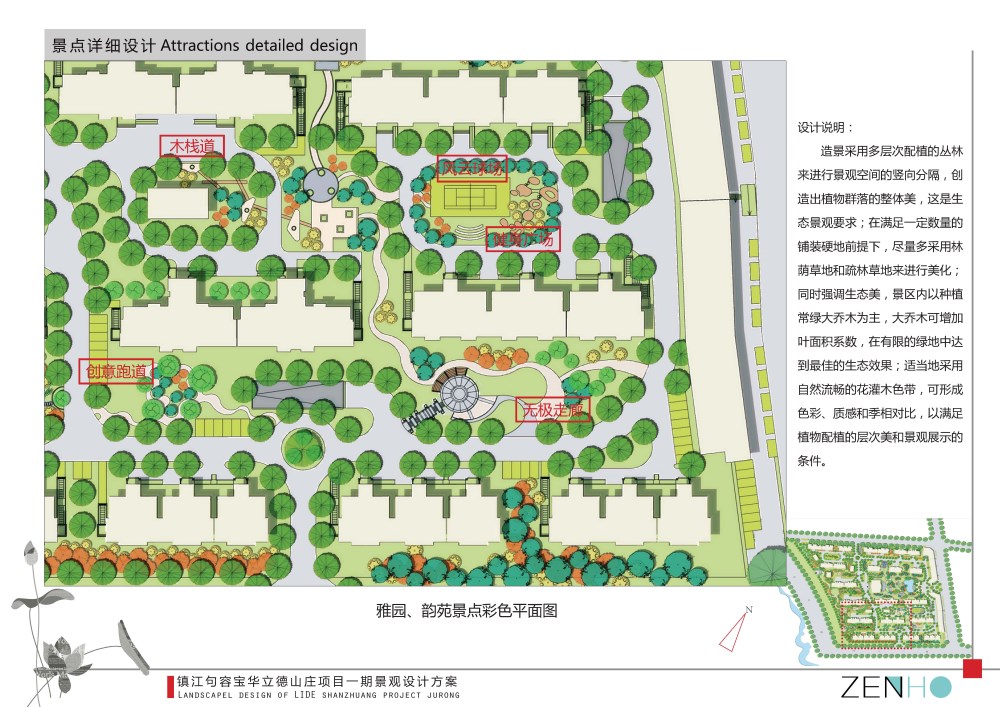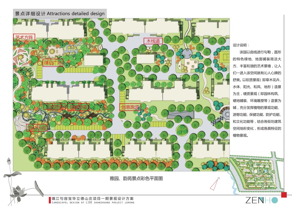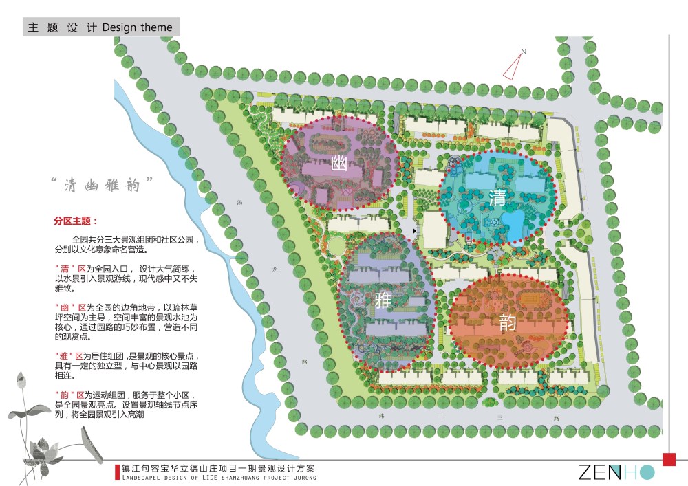 " 雅" 区为居住组团,是景观的核心景点,具有一定的独立型,与中心景观以园路相连。