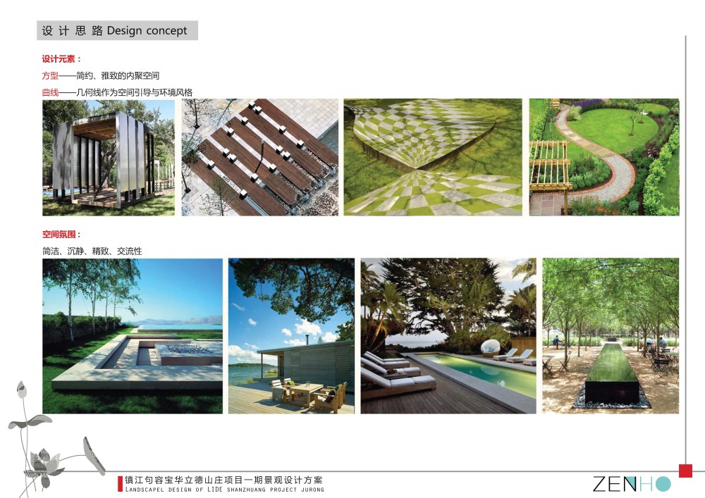 " 清" 区为全园入口, 设计大气简练,以水景引入景观游线,现代感中又不失雅致。