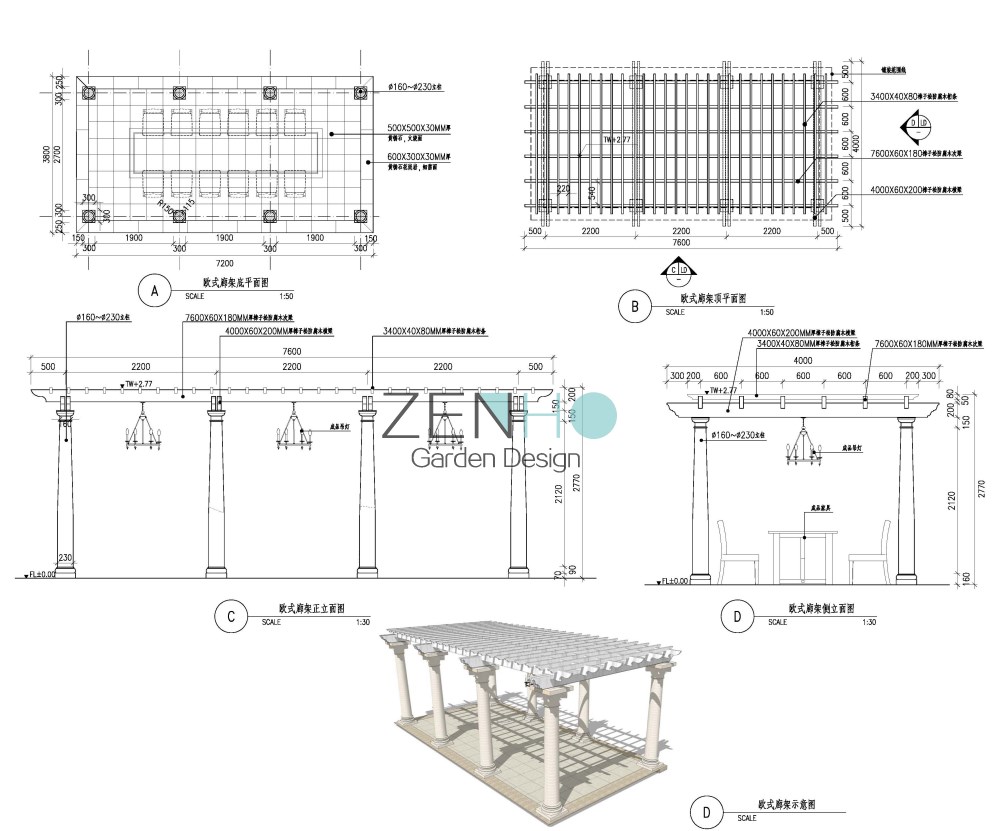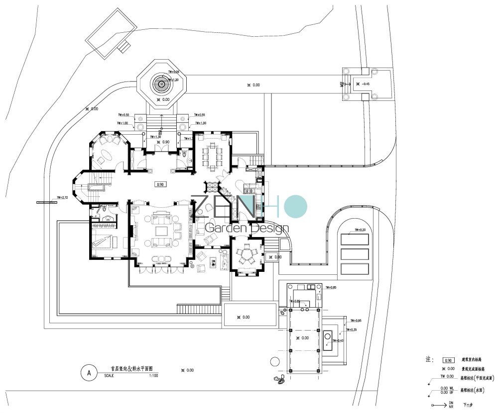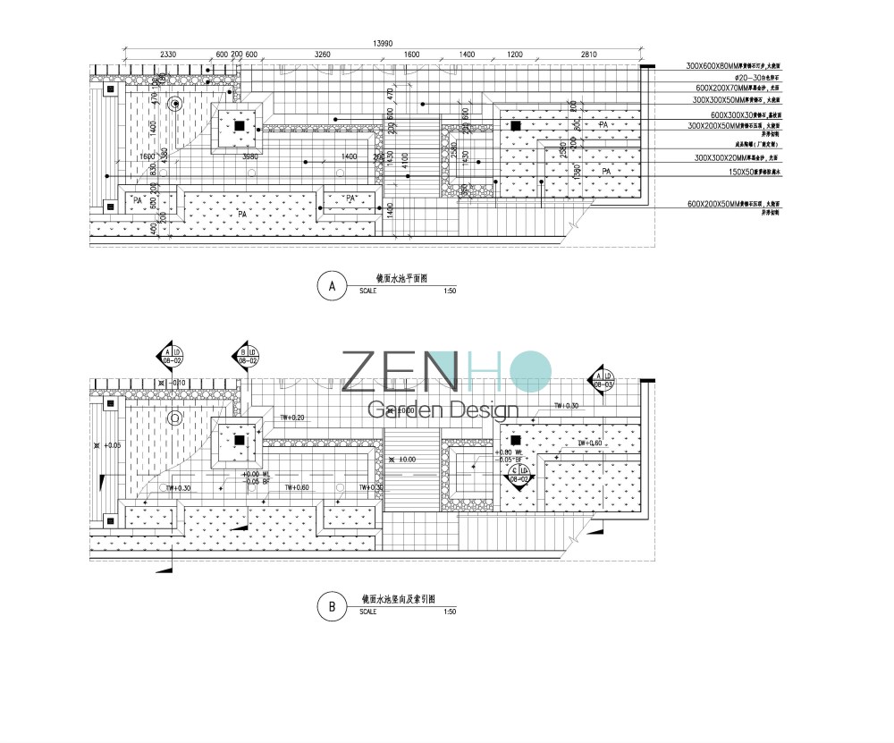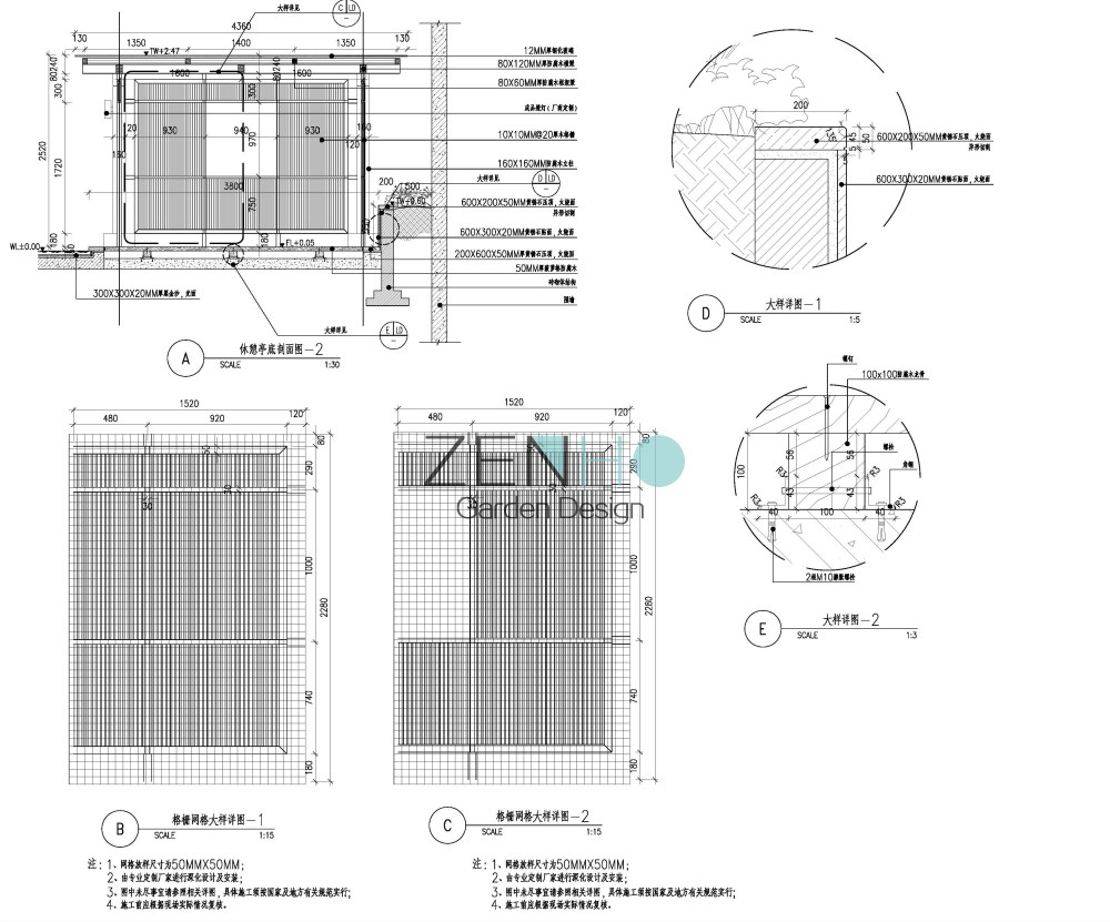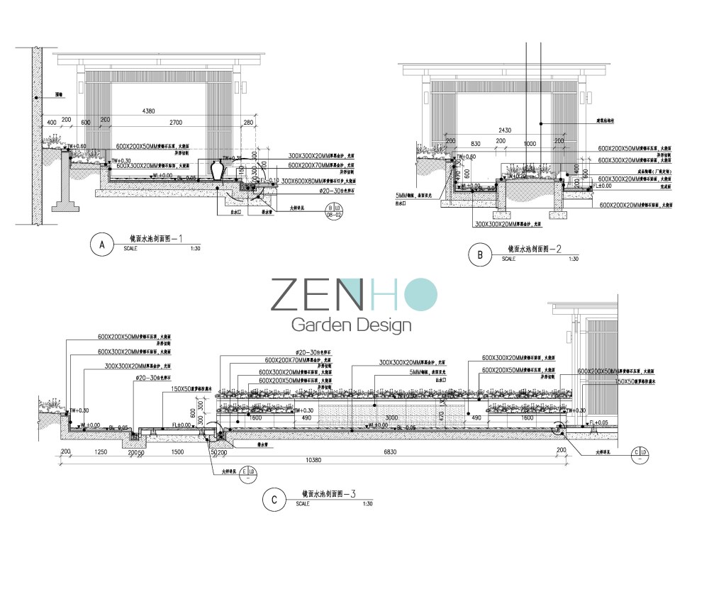 景观设计施工图案例展示具体内容包括: Ⅰ、为硬、软景施工提供详图的全套设计图纸。 Ⅱ、协助甲方编制硬景、软景工程精度安排。 Ⅲ、提供景观工程造价概算。 Ⅳ、按设计周期要求提交下列详图的硬景设计文件,供施工之用。包括: ·硬质景观详图和施工图(包括各园林小品的立面图/剖面图,重点铺装图,详细的园景节点大样图、结构图等); · 景观指引图及定位图;· 标高设计图;· 局部平面图和剖面图;· 地面排水及灌溉图;· 照明图;· 水、电施工图; · 软景元素包括以下内容:乔木和灌木;草地和地被植物;土方工程的斜坡等;特殊的排水要求;特殊的移植规范和图则。 · 制备及编制材料表,植物表及有关的工料规范。